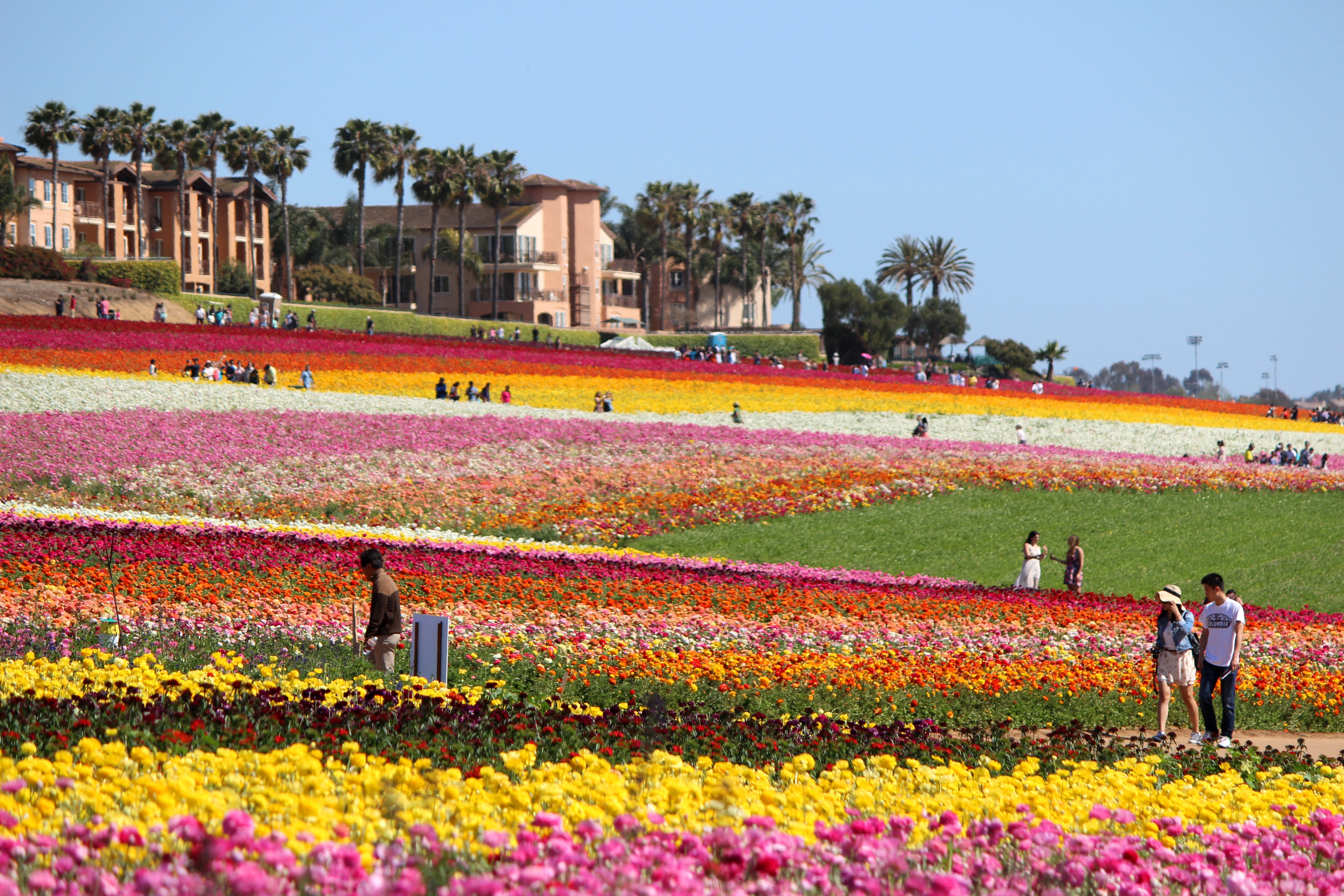 The Carlsbad California Flower Fields were originally operated as a ranunculus flower farm in the early 1930s. Over time, the farm grew, and the flowers became a popular attraction for visitors who came to admire the stunning blooms.